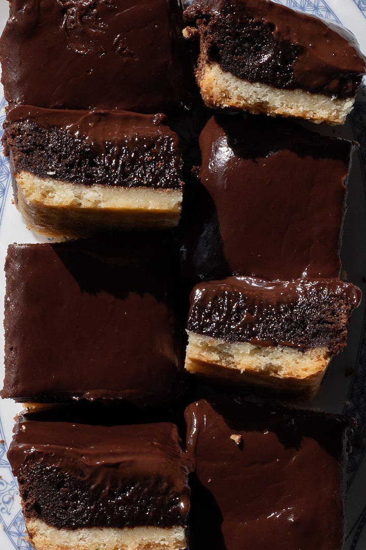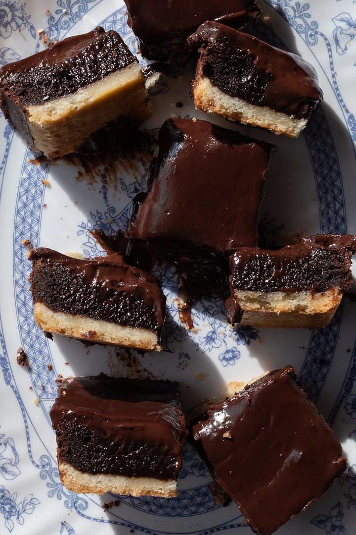 These got a very much needed small batch update on my blog. They used to make a 8” square pan of brownies and now they make a cute lil loaf pans worth of brownies. I also swapped in powdered sugar instead of granulated sugar to make the shortbread a little more delicate, and I changed the whipped ganache to just your standard ganache, because it’s just as delicious and it’s much less work.