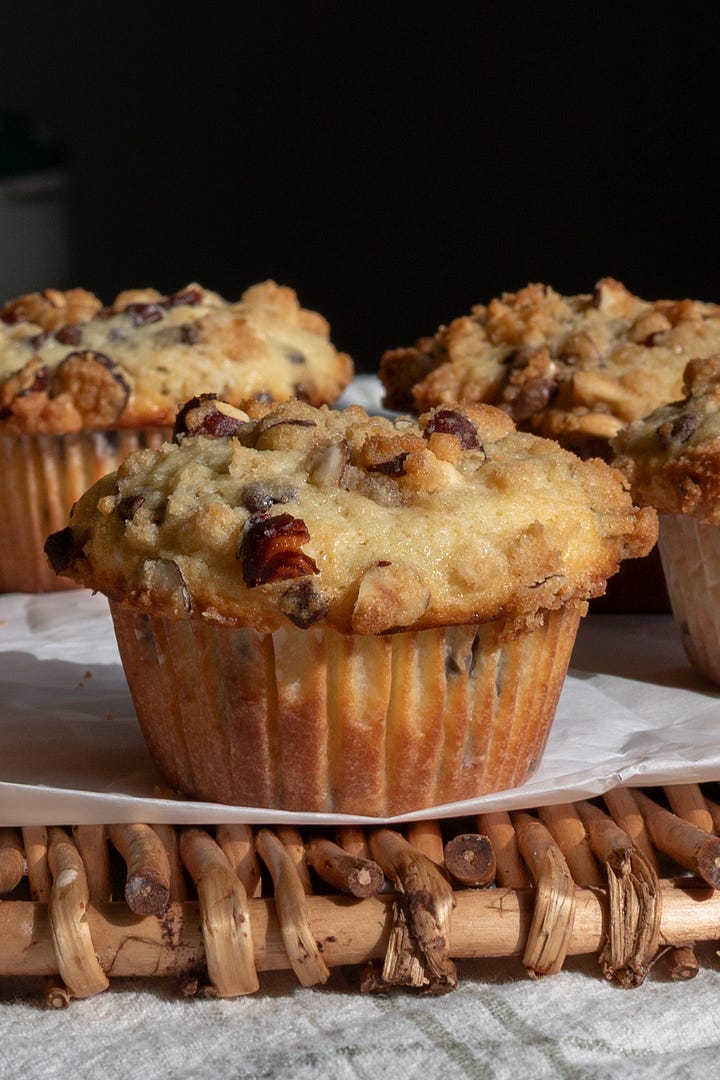 AKA nutella stuffed muffins - these are new on the blog this week! I haven’t put out a muffin in a while because I feel like there’s not much to be done with muffins and I feel like people don’t usually want to make muffins when they want to bake something, buuuut I was inspired to make these by the jar of chocolate hazelnut spread I had in my pantry. They’re made with a super moist and fluffy vanilla muffin base that’s loaded with mini chocolate chips, stuffed with chocolate hazelnut spread (like nutella, but I use bonne maman’s!), and they’re topped off with a brown sugar hazelnut streusel to amplify the hazelnut flavor. I recommend letting the batter rest for 30 minutes before baking for the best results, but they’re delish no matter what!